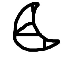 A crescent moon with seemingly random lines in it.